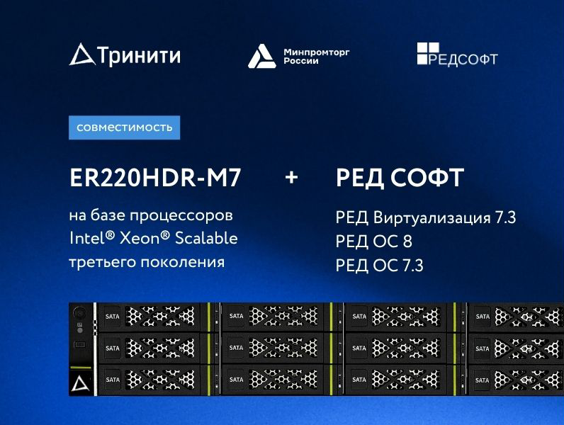 Компания Тринити провела испытания высокопроизводительного сервера третьего поколения ER220HDR-M7 на совместимость с решениями РЕД СОФТ.